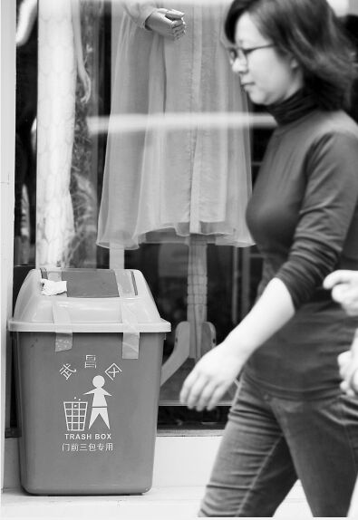 門前三包的主要內容是包潔凈包有序包美化,為了給三包添彩,也為了經營戶方便,這個垃圾桶就這么設立起來了,費用由各街道設法解決,經營戶沒有出錢。